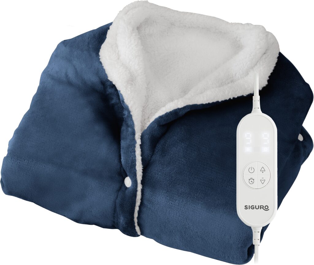 Diese elektrisch beheizte, hervorragend sitzende Weste schenkt Ihnen an kühlen Tagen angenehme Wärme, lindert Rückenschmerzen und sorgt für ein beruhigendes Wohlgefühl. Die Siguro Cosy Warmth M450D ist so gestaltet, dass sie sich leicht über den Rücken legen und per Klettverschluss fixieren lässt. Dank praktischer Armöffnungen schränkt sie die Bewegung nicht ein – ideal auch beim Arbeiten am Computer oder beim Lesen. Das weiche, voluminöse Material fühlt sich sehr angenehm an und die Weste ist außerdem maschinenwaschbar. Mit der Fernbedienung mit Display stellen Sie bequem eine von neun Heizstufen ein oder aktivieren den Timer.