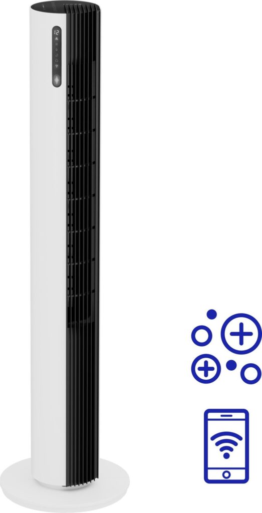 Die Bedienung des Ventilators ist denkbar einfach. Auf dem Gehäuse des Geräts befindet sich ein beleuchtetes Bedienfeld mit Touch-Tasten und Display. Ebenfalls enthalten ist die Fernbedienung, die mit einer CR2032-Batterie ausgestattet ist. Nicht zuletzt können Sie die TUYA Mobile App nutzen, um den Siguro FN-U320W Ionic Super Silent WiFi Lüfter bequem von Ihrem Mobiltelefon oder Tablet aus zu steuern. Nach dem Ausschalten (nicht nach dem Abziehen des Netzsteckers) merkt sich der Lüfter die zuletzt eingestellte Lüftergeschwindigkeit, so dass diese nicht bei jedem Einschalten neu eingestellt werden muss.