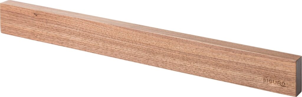Die Siguro Black Walnut Magnetleiste ist aus dunklem, zertifiziertem Walnussholz gefertigt - sie passt perfekt in Küchen, in denen Naturmuaterialien dominieren. Neben Messern können alle Küchenutensilien aus Metall (Messerschärfer, Scheren usw.) befestigt werden.