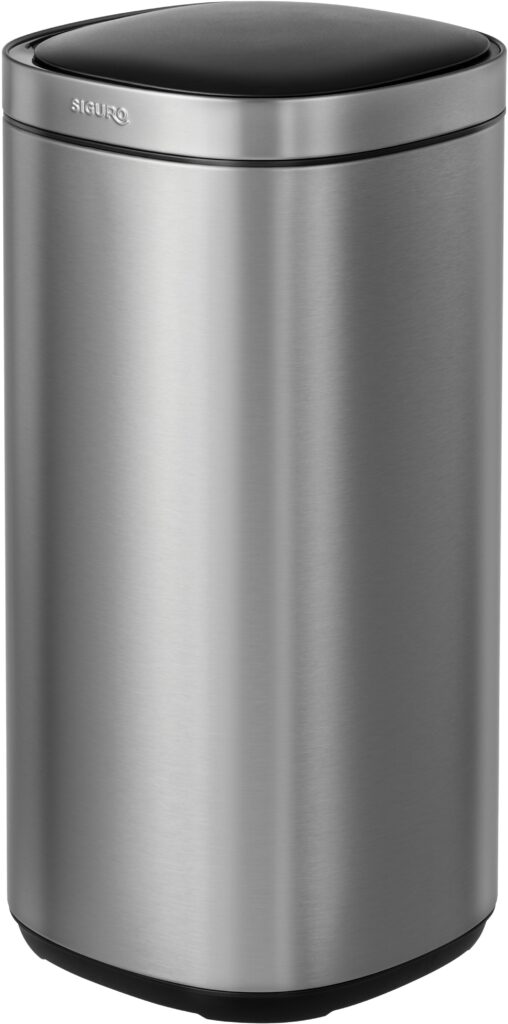 Das Design des Mülleimers kombiniert eine elegante Edelstahl-Ausführung mit schwarzen Details, wodurch er sauber, zeitlos wirkt und sich problemlos in jedes moderne Interieur einfügt. Die Oberfläche des berührungslosen Mülleimers Siguro Motion Open L301SU ist zudem mit einer speziellen fingerabdruckresistenten Beschichtung versehen, die sichtbare Schlieren und Berührungsspuren deutlich reduziert. So behält der Mülleimer auch bei täglicher Nutzung ein gepflegtes Erscheinungsbild und lässt sich schnell und unkompliziert reinigen.