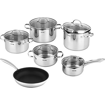 Wenn Sie auf der Suche nach neuem Kochgeschirr für Ihre Küche sind, sollten Sie sich das 11-teilige Siguro Pure Delight Set nicht entgehen lassen. Es enthält vier Töpfe und eine Stielkasserolle inklusive Deckel sowie eine Pfanne mit einer langlebigen, antihaftbeschichteten, dreischichtigen ILAG® Professional S Oberfläche, die es Ihnen ermöglicht, mit minimalem Fett zu kochen, ohne die Speisen anzubrennen. Das Set besticht nicht nur durch sein modernes Design, sondern auch durch seine hochwertige Verarbeitung aus Edelstahl. Die Töpfe sind mit cleveren Deckeln mit praktischen Ausgießern ausgestattet.