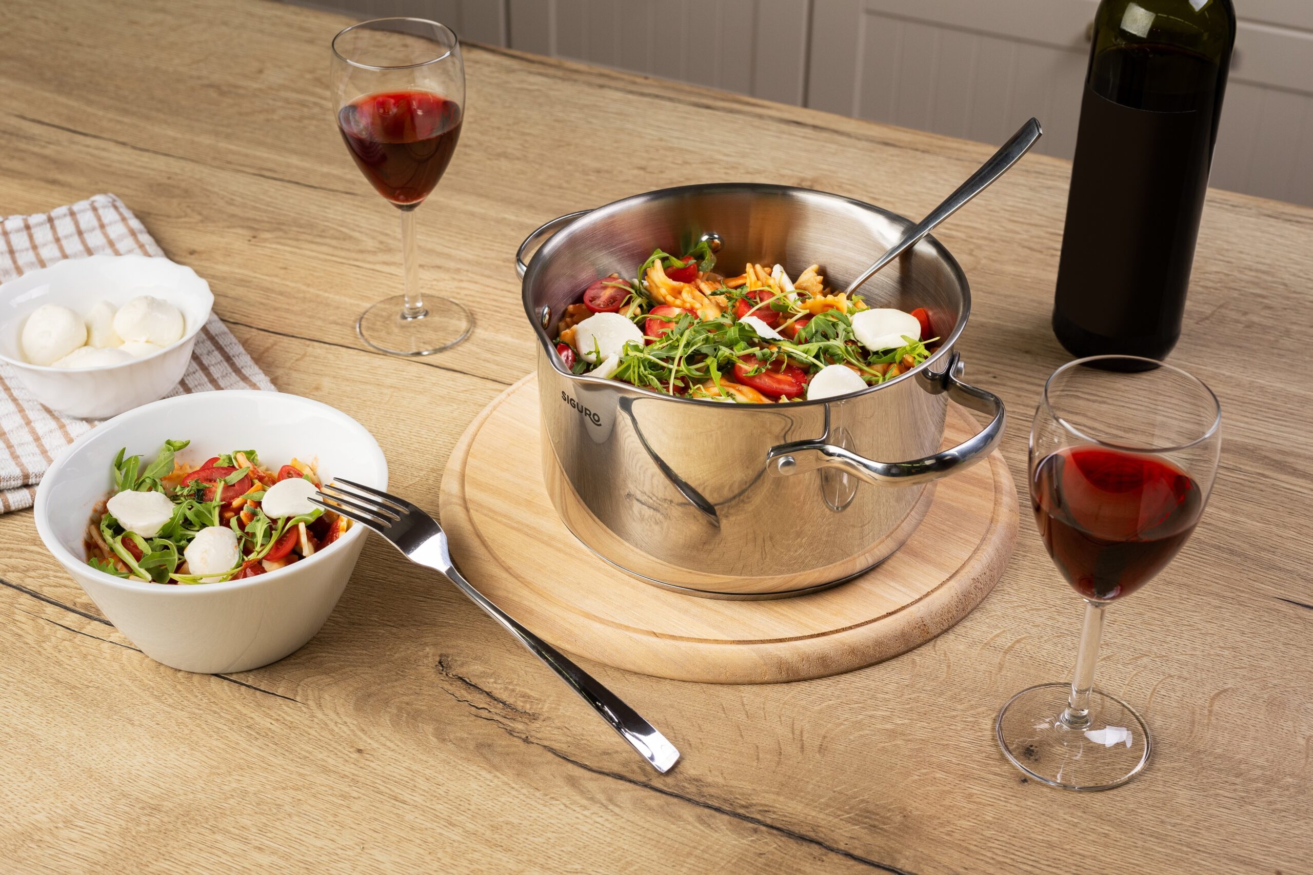Für eine möglichst sichere Handhabung ist er mit robusten Edelstahlgriffen mit langlebigen Nieten ausgestattet. Die Innenwand des Topfs ist mit einer praktischen Füllstandsanzeige versehen, so dass Sie immer genau wissen, wie viel Wasser Sie in dem Topf haben. Sie werden es zu schätzen wissen, dass Sie den Siguro Pure Delight Topf und den Deckel in der Spülmaschine waschen können.
