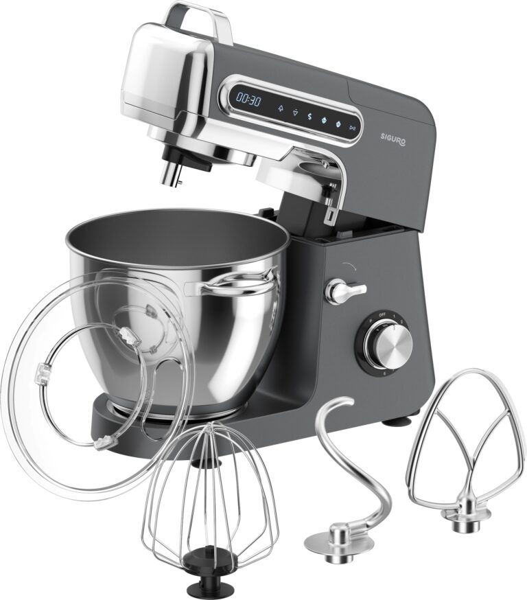 Die Packung enthält einen Rührbesen, einen Knethaken und einen Schneebesen. Die Küchenmaschine kann also problemlos die Arbeit mehrerer separater Geräte übernehmen. Das spart nicht nur Platz in der Küche, sondern auch Zeit und Geld. Die Siguro KM-M321 Küchenmaschine schlägt, mischt und knetet. Außerdem gibt es eine PULSE-Taste für die schnelle und effiziente Verarbeitung von Zutaten im Mixerbehälter bei maximaler Geschwindigkeit und Drehzahl in kurzen Intervallen.