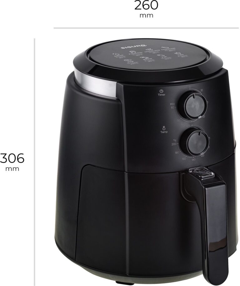The Siguro AF-G25 Easy Fry air fryer is incredibly easy to use. You just need two dials to set the temperature and the cooking time. When your food is ready, you will hear an audible signal that lets you know it's dinner time. You'll also welcome the cool-touch handle and the thermal safety lock that ensures safe cooking.