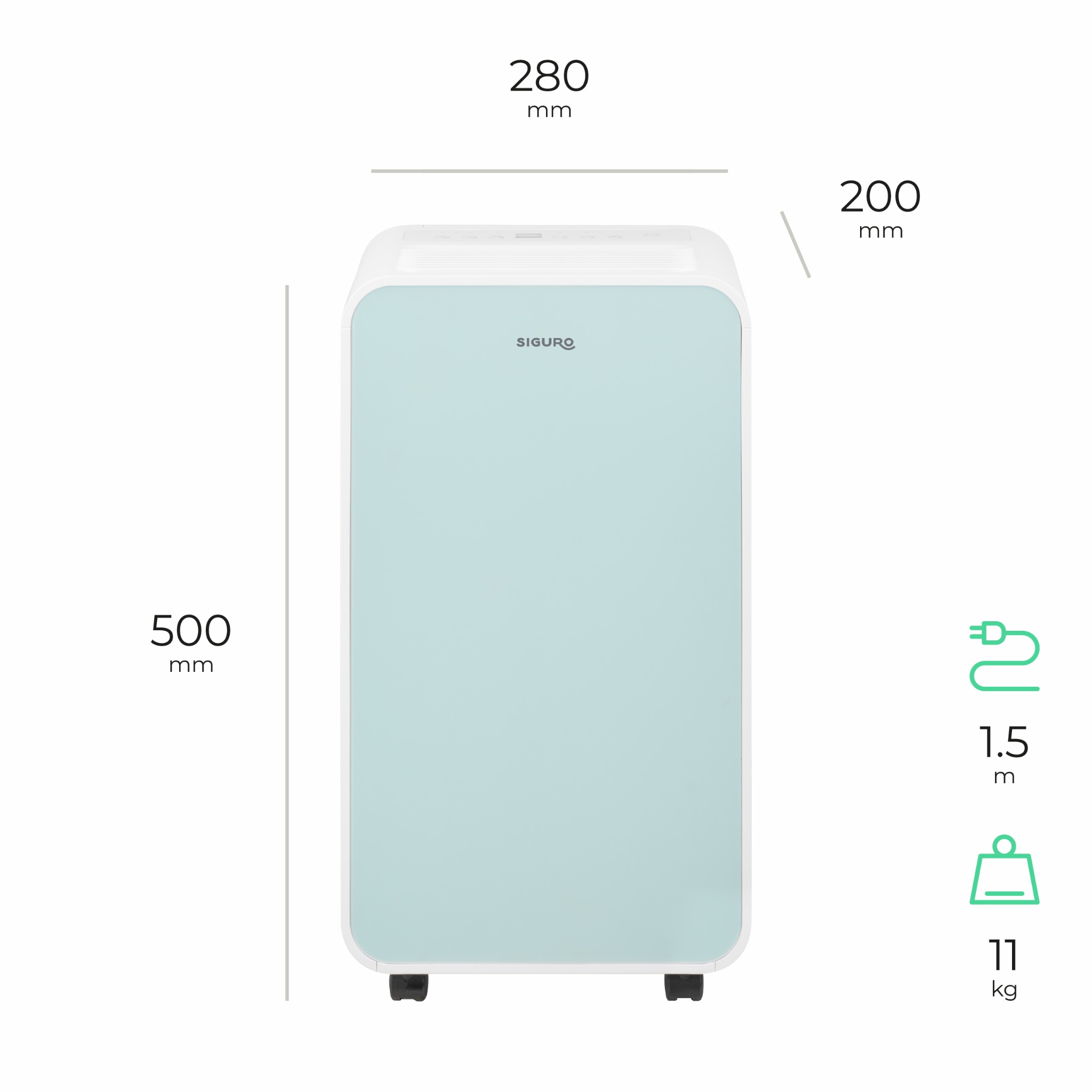 Timer, Full tank indication, Anti-Freeze, Auto-defrost, Display, Automatic dehumidification, Automatic shutdown