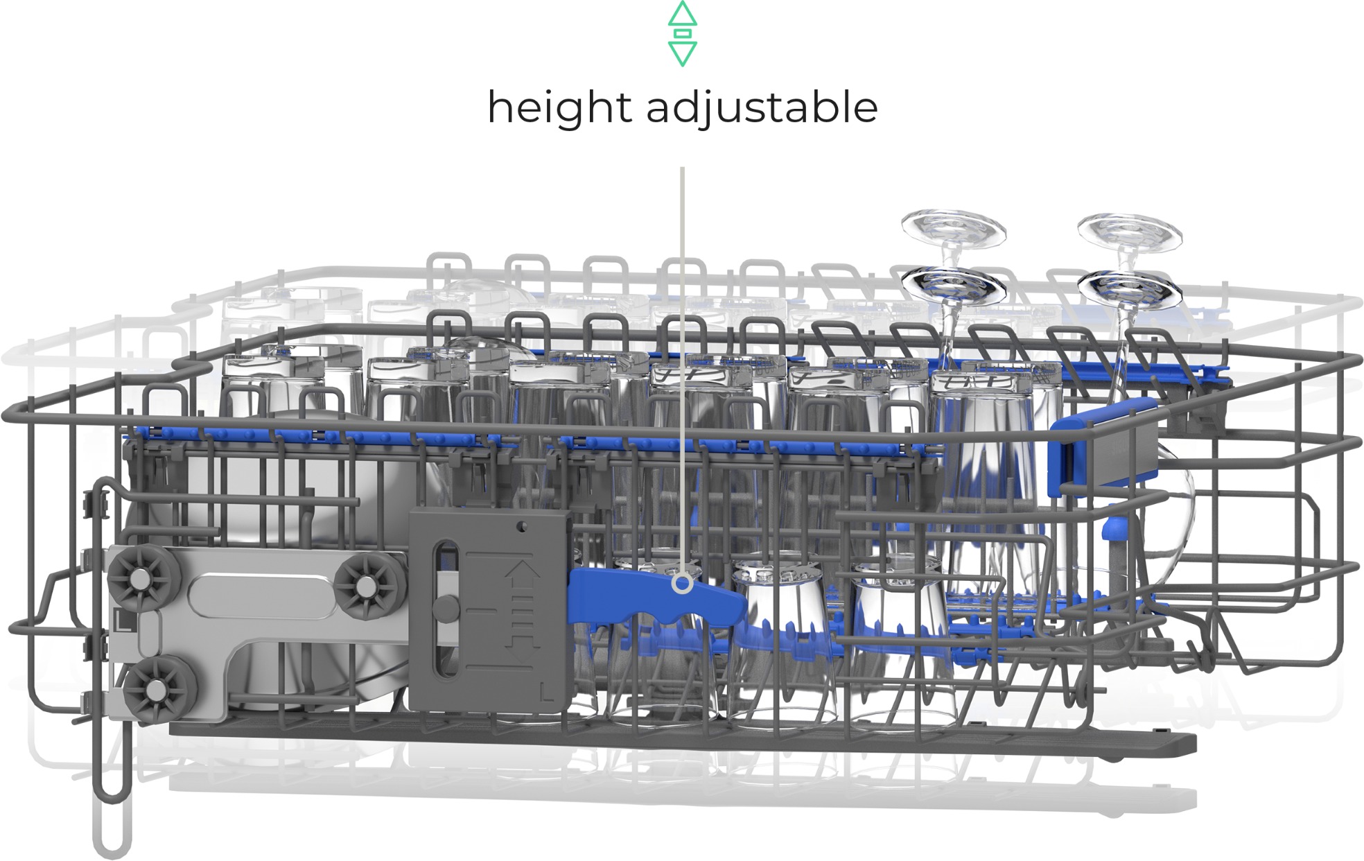 Display, Glass/bottle washing nozzles, Removable top cover, Adjustable dish racks