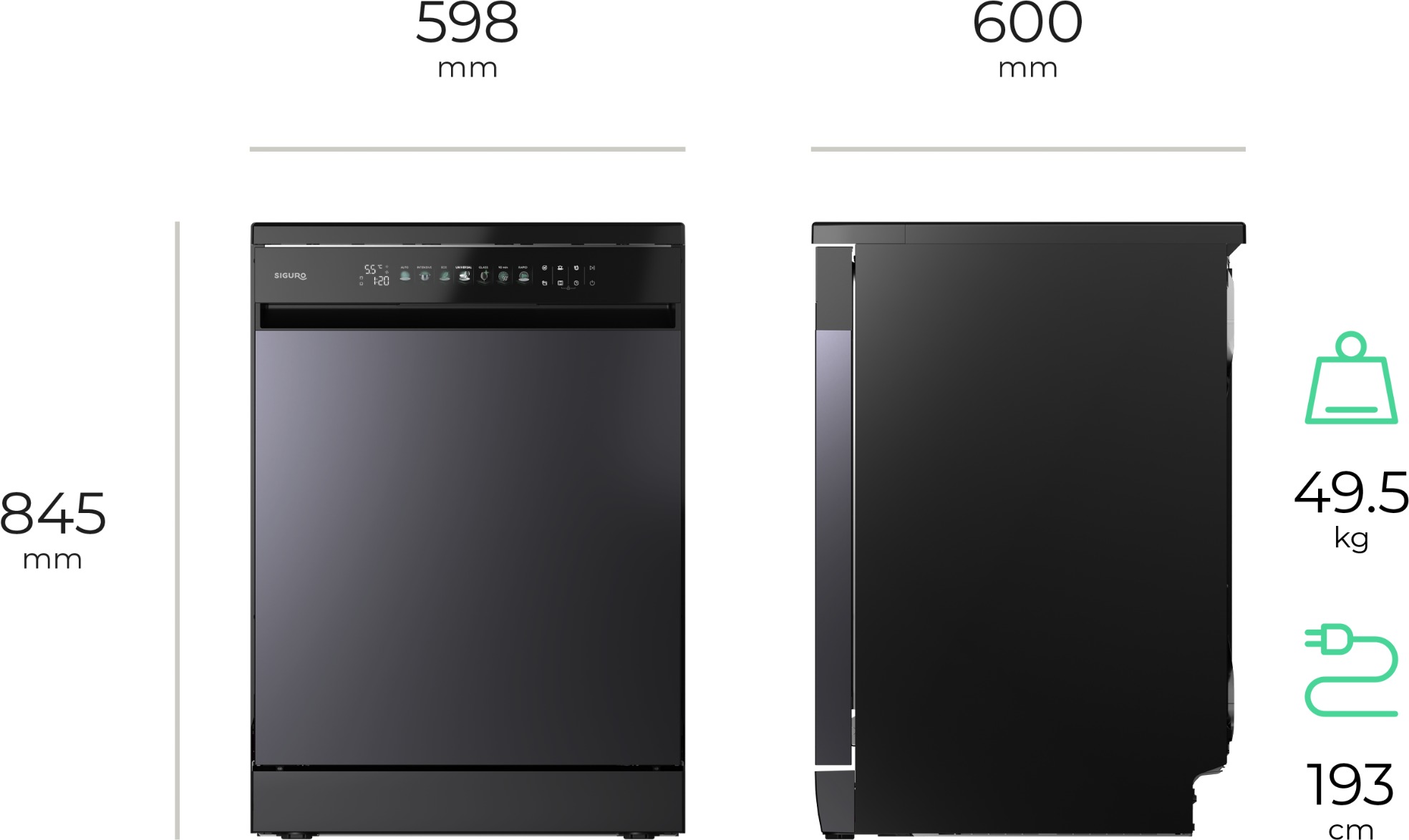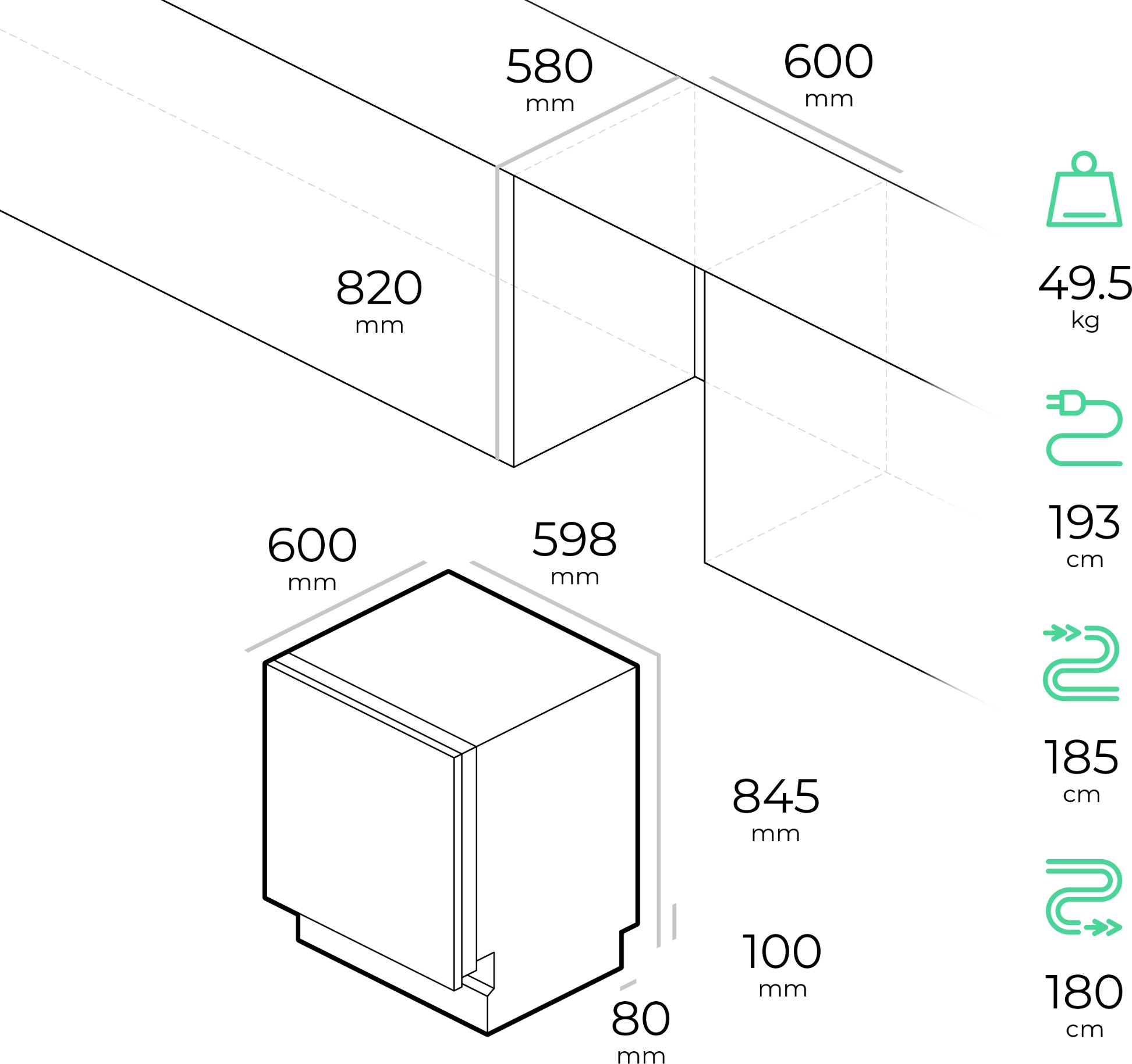 Dishwasher dimensions and weight