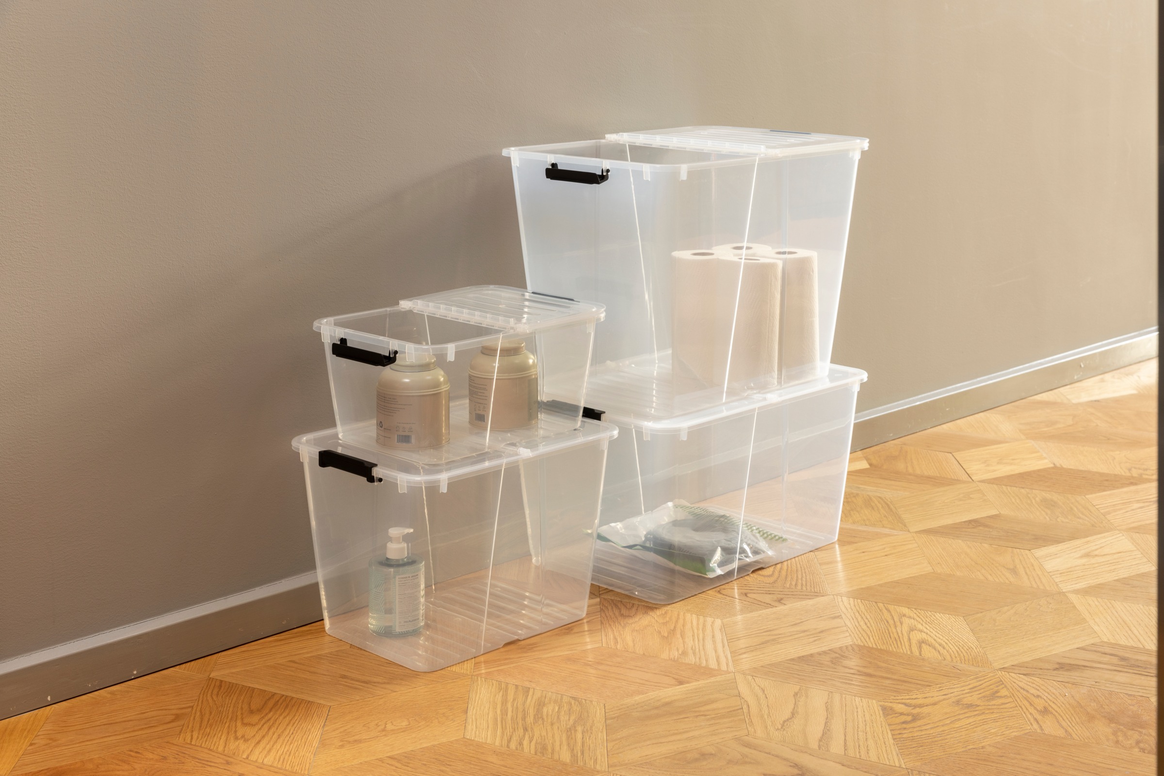 Siguro Fold Box with folding lid 65 l, 56,7 x 39,6 x 41,7 cm, transparent