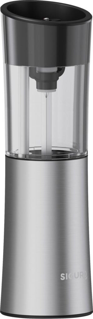 The Siguro Gravity Grindz electric pepper or salt grinder impresses with its metal-dominated design. The remaining parts are made of durable BPA-free material. The metal has a fingerprint-resistant matt finish - so the grinder always looks perfect.