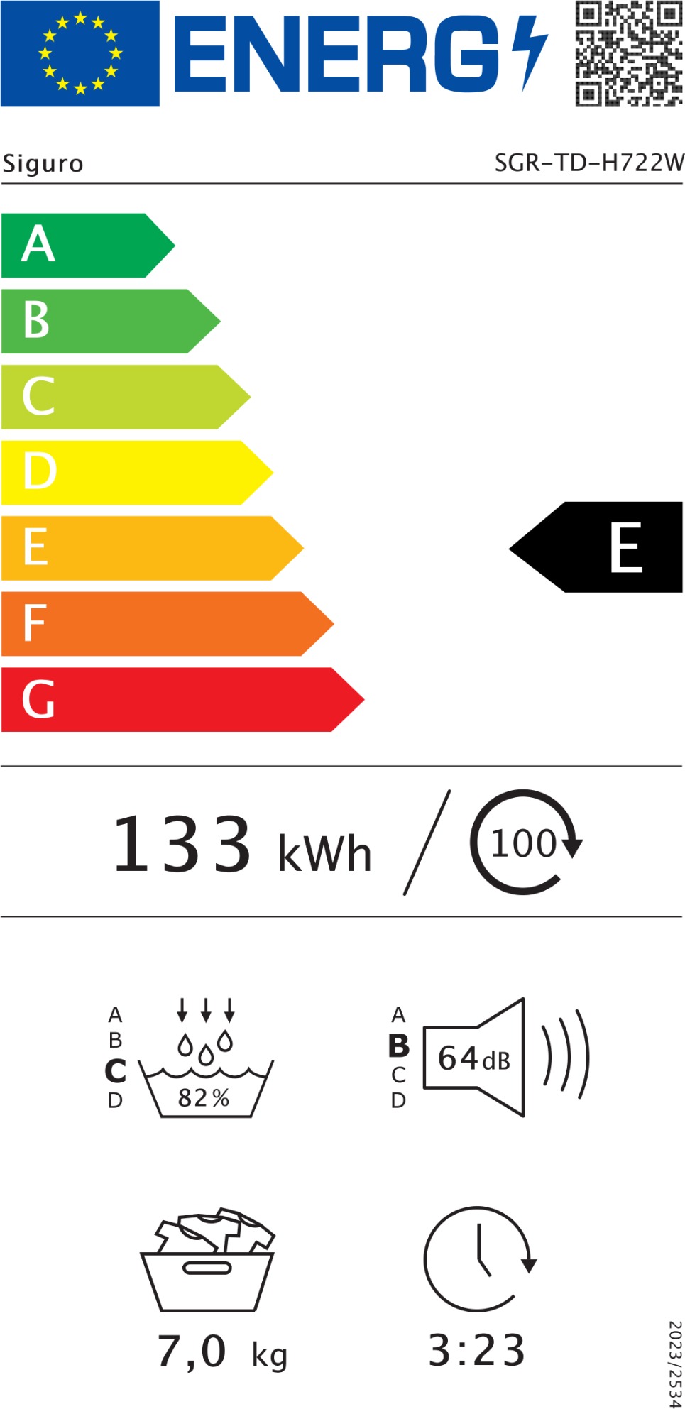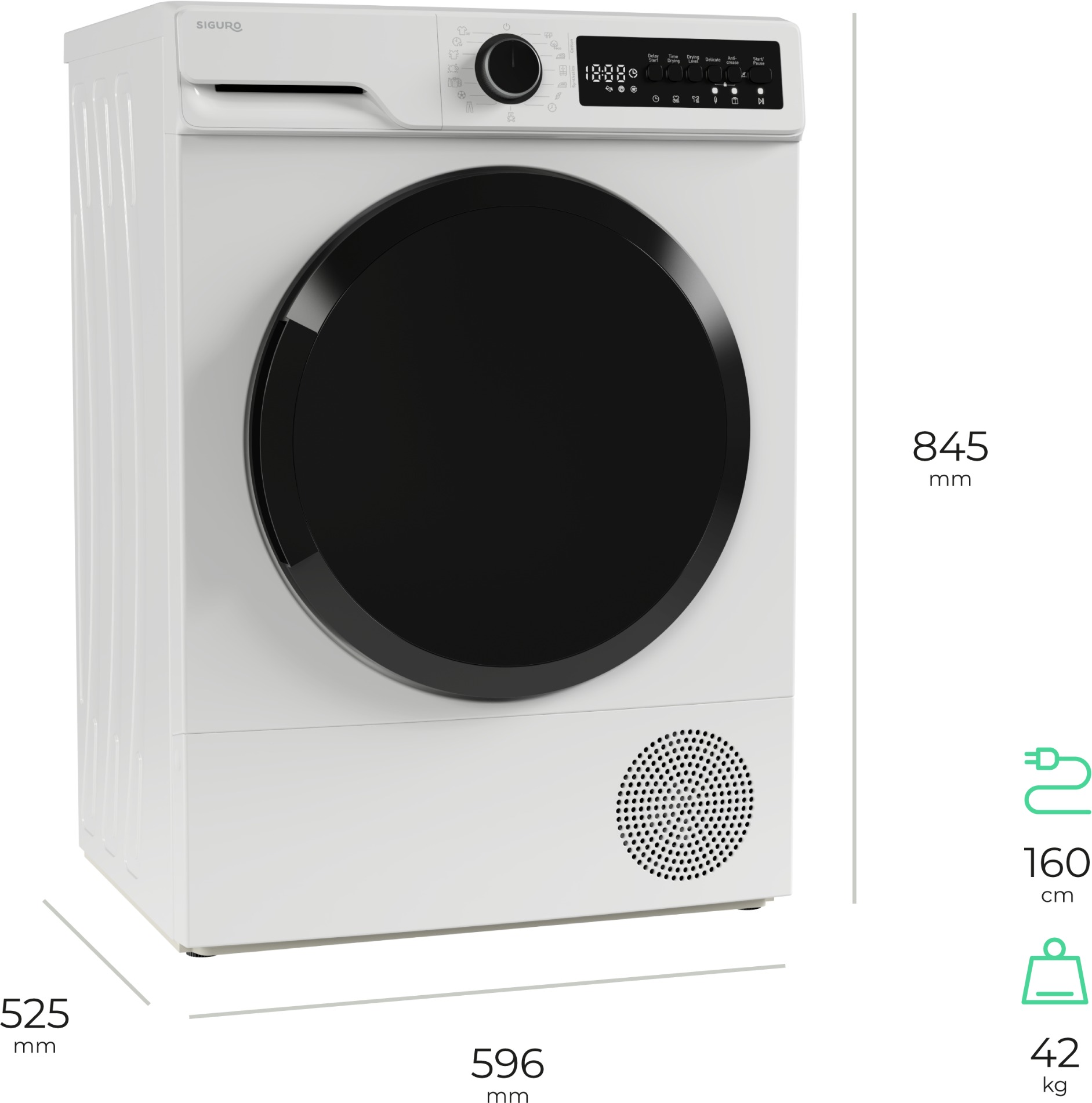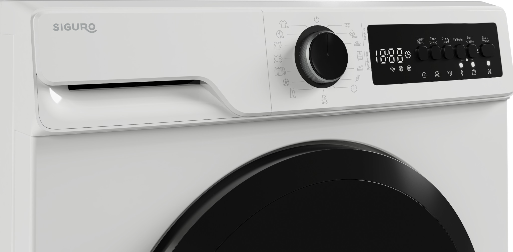 Audible signal at end program, Display, Heat Pump, Delayed start, Child protection, Interior lighting