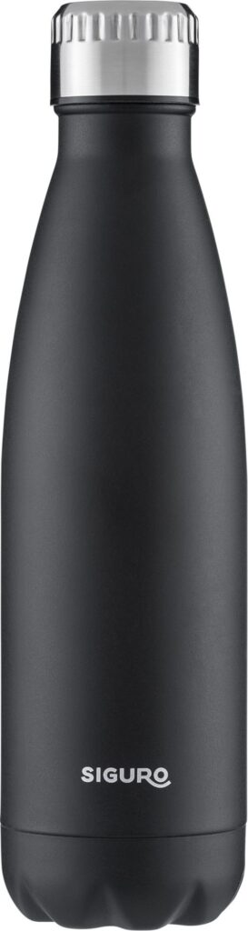 The designer Siguro TH-B15 Thermal Vacuum Bottle features an airtight screw cap with a silicone seal that guarantees perfect sealing in all positions. You can store the Siguro TH-B15 in your backpack or handbag without fear of spilling your drink and ruining your belongings. The closure is knurled around the perimeter, making the bottle easier to open and close. An optimal neck size allows for easy cleaning, comfortable pouring and drinking directly from the bottle.