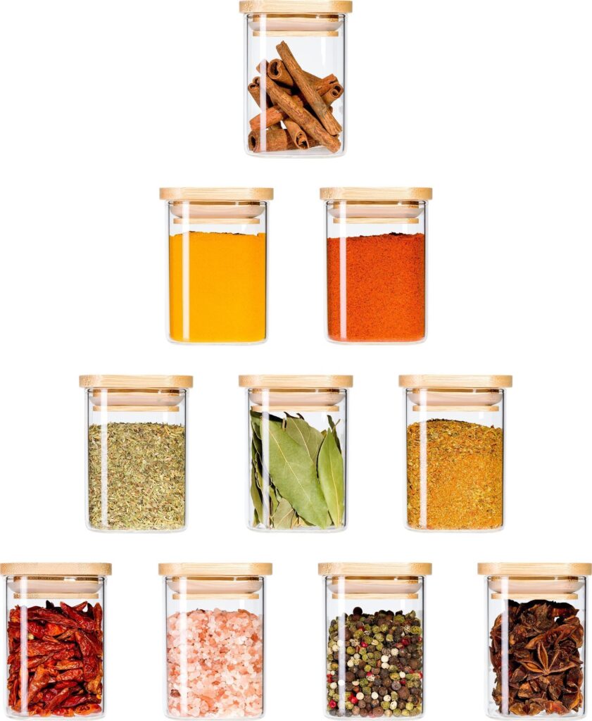 Az átlátszó kialakításnak köszönhetően mindig azonnal megtalálod, amire szükséged van, függetlenül attól, hogy a Siguro Bambusz fűszertartók hol vannak elhelyezve. Egy pillantás alatt láthatod, ha kifogyóban van az élelmiszered. A fűszertartók egyszerű és elegáns megjelenése meleg benyomást kelt a konyhában, ami egy kicsit kellemesebbé teszi a főzést.