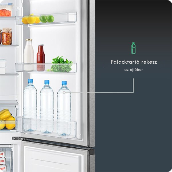 A 198 literes hűtőrész négy edzett üvegpolccal van felosztva. A felső polc magassága állítható, így szükség esetén egyszerűen megváltoztathatod a tárolótér elrendezését. A Siguro BF-N140S Ice Guru hűtőszekrény ajtajában tágas rekeszeket találsz, amelyek nagy palackok, üvegek és kisebb élelmiszerek tárolására egyaránt alkalmasak. Rendelkezik kihúzható Crisper rekesszel is a friss gyümölcsök és zöldségek tárolására.
