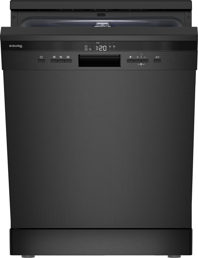 A Siguro DW-F602DS Neo Green mosogatógép felhasználóbarát, minden funkció és program kényelmesen beállítható a nagyméretű mechanikus gombokkal ellátott kezelőpanelen. Tartalmaz egy fehér háttérvilágítású információs LED kijelzőt is. Természetesen van egy gyermekzár, amely lezárja a vezérlőpanelt a beállítások nem kívánt módosítása ellen. A mosogatógép jelzőfényekkel figyelmeztet, ha só- vagy öblítőszerhiányt érzékel.