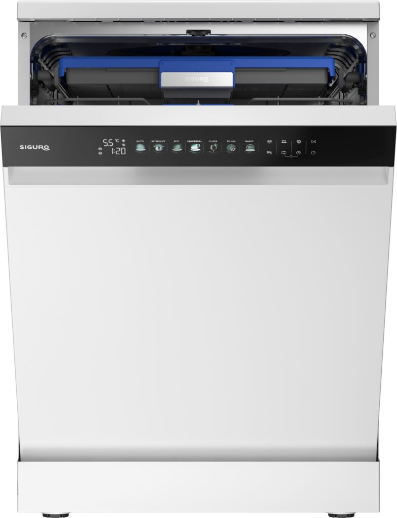 A gazdaságos, szabadon álló Siguro EasyTouch F603DS mosogatógép az A energiaosztályú, energiatakarékos működés mellett rendkívül csendes működést, belső LED-világítást, modern vezérlést színes érintőképernyővel, valamint háromféle pozícióban állítható felső kosarat kínál, akár edényekkel együtt is. Ez a mosogatógép egyszerre akár 16 teríték elmosogatására képes, és a fejlett technológiáknak köszönhetően mindössze 56 kWh-t fogyaszt 100 ciklusonként. Továbbá 7 mosogatási program, zónás mosogatás, speciális fúvókák és palackmosó tartók (Bottle Wash), multifunkciós evőeszköztartó fiók, valamint automatikus ajtónyitás áll rendelkezésedre. A Siguro EasyTouch F603DS kiváló mosogatási eredményeket biztosít és megbízhatóan gondoskodik edényeidről – eltávolítja arászáradt ételmaradékokat és a zsírt, tiszta és ragyogóan fényes felületet hagy maga után. A levehető felső panelnek köszönhetően a mosogatógép könnyen beépíthető a konyhabútor alá.