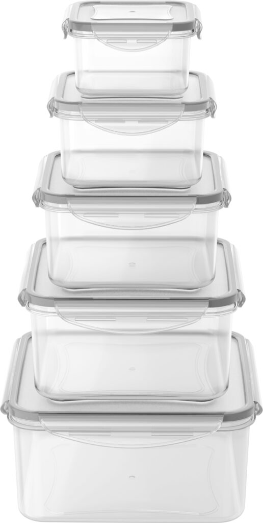 Ezek a négyzet alakú tárolók kiváló minőségű, BPA-mentes műanyagból (PP) készültek, amely nem szívja magába a szagokat és illatokat, így azok nem keverednek az eltárolt ételek között. A szilikontömítéssel és kapcsokkal ellátott biztonságos zárófedélnek köszönhetően a dobozok tartalma nem folyik ki – nyugodtan magaddal viheted hátizsákban vagy táskában. Az átlátszó kialakításnak hála mindig azonnal láthatod, mi van bennük. A fedél ráadásul praktikus poháralátétként is használható. A Siguro Fresh Keeper ételtároló doboz mikrohullámú sütőben, mosogatógépben, hűtőben és fagyasztóban is használható, üresen pedig egymásba rakhatók. A szett összesen5 különböző méretű dobozt tartalmaz, fedéllel együtt.