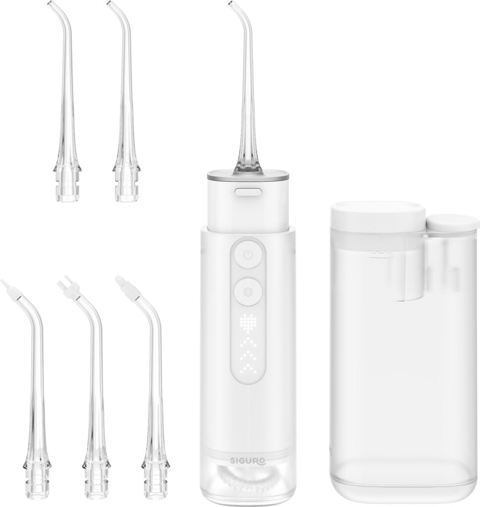 A kompakt kialakítás lehetővé teszi, hogy a Siguro FlossJet I730W elektromos szájzuhanyt közvetlenül a tartályba csúsztasd, ami megkönnyíti a tárolást és a szállítást. Az ABS műanyagból készült ergonomikus kialakítás az egyszerű kezeléssel együtt kényelmes mindennapi használatot biztosít. Így minden kéznél van – a fejek széles választékától kezdve az okos funkciókon át a hosszú akkumulátor-üzemidőig.