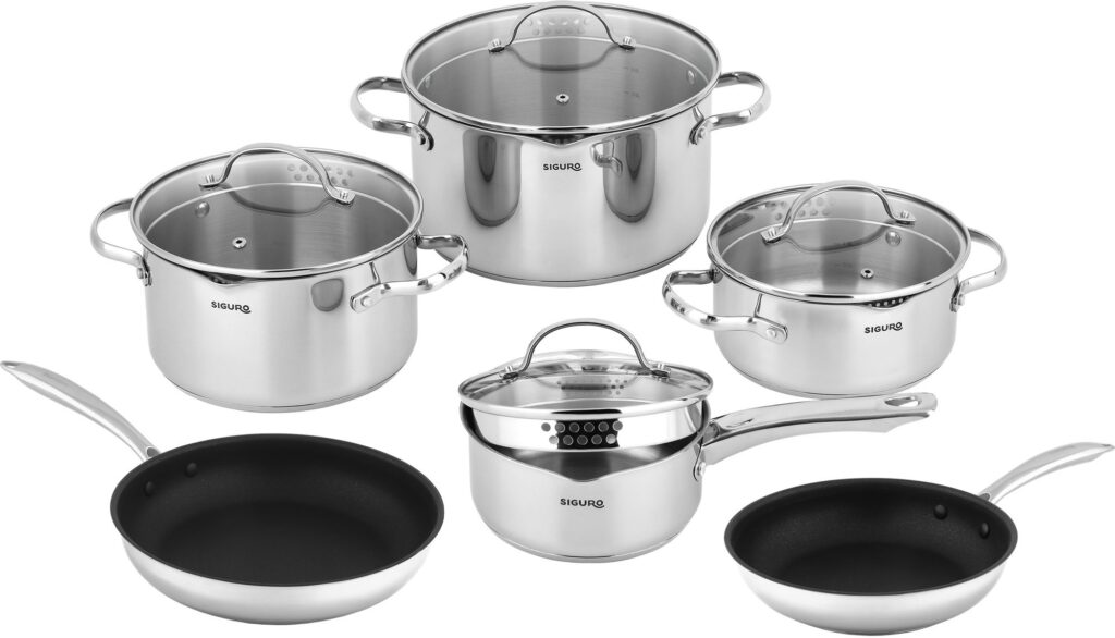 A Siguro Pure Delight edények és serpenyők prémium minőségű, egészségre ártalmatlan 304 rozsdamentes acélból készülnek a maximális tartósság és hosszú élettartam érdekében. Az ILAG® Professional S serpenyők tapadásmentes felülete sem tartalmaz vagy bocsát ki mérgező anyagokat. Az egész készlet minden típusú főzőlapon használható, beleértve az indukciósat is. A fedővel bíró edények és serpenyők sütőállóak - akár 250 °C-os hőmérsékletet is gond nélkül kibírnak, és az egész készlet mosogatógépben mosható.