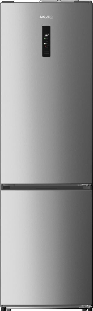 A Siguro Starmie A251S kombinált hűtőszekrény már első pillantásra lenyűgöz energiatakarékosságával (A energiaosztály), rendkívül halk működésével (33 dB, B zajszint osztály) és modern kezelőfelületével, amely színes érintőképernyő formájában közvetlenül az ajtón található. Nagyvonalú, 405 literes belső térfogatot kínál, amelyből 120 liter a fagyasztóra jut, így problémamentesen befogadja egy egész háztartás élelmiszereit. Természetesen rendelkezik No Frost jégmentesítő technológiával,fejlett Multi Air 360° hűtési rendszerrel, Metal Cooling funkcióval, praktikus Care+ rekesszel állítható hőmérséklettel a hűtőrészben, energiatakarékos LED-világítással és sötét rozsdamentes acél belső térrel. A prémium benyomást a kiváló minőségű kidolgozás, a csendes inverteres kompresszor és a süllyesztett fogantyúkkal ellátott letisztult dizájn teszi teljessé.