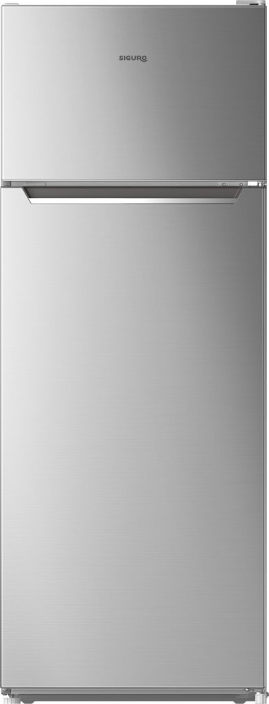 A Siguro TF-J240Y Fresh hűtőszekrény összesen 211 liter hasznos térfogatot kínál, amelyből 41 liter a készülék felső részében elhelyezett fagyasztóé. A 170 literes hűtőrész négy edzett üvegpolccal van felosztva, amelyek állíthatók – szükség esetén egyszerűen módosíthatod a tárolótér elrendezését. Az ajtóban szintén állítható rekeszeket találsz nagy palackok, üvegek vagy kisebb élelmiszerek tárolására. A készülék rendelkezik kihúzható Crisper rekesszel a gyümölcsök és zöldségek tárolására, valamint rozsdamentes bortartóval két palack számára. Az ajtó akár 128°-os szögben isnyitható, ami tökéletes hozzáférést biztosít a tárolt élelmiszerekhez.