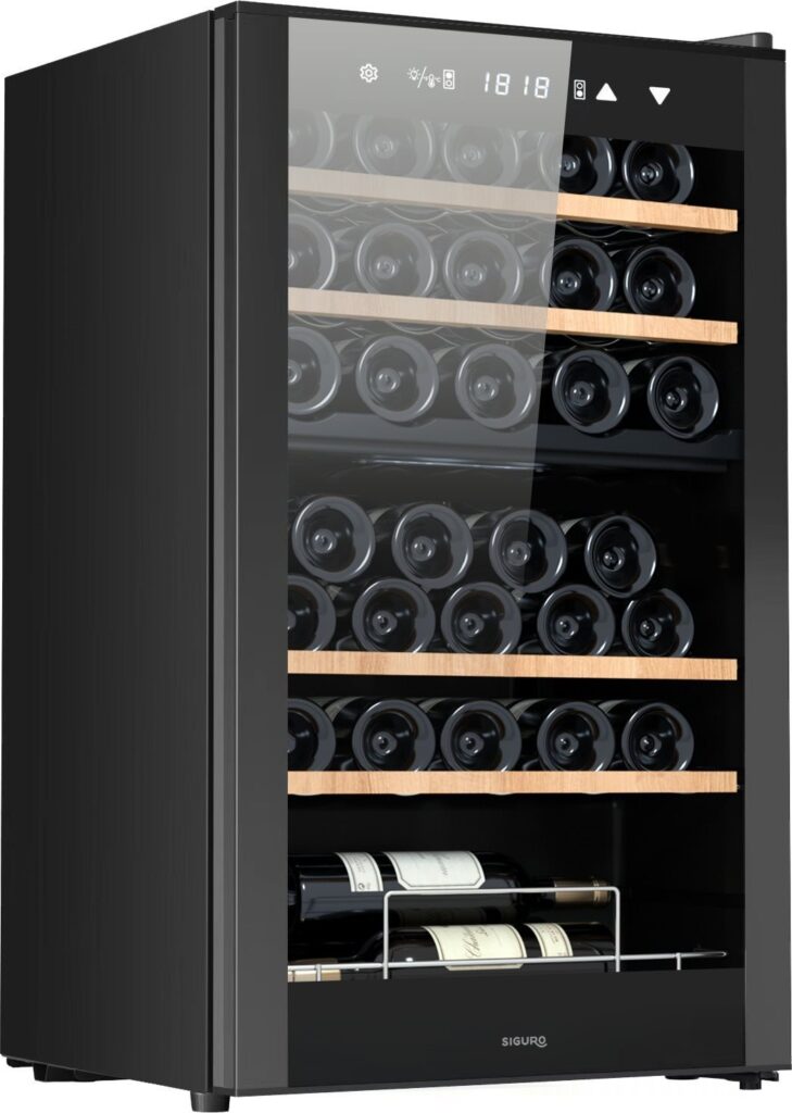 Az érzékeny hűtőrendszer biztosítja az állandó, ingadozásmentes hőmérsékletet, amely nagyszerű előfeltétele a tárolt borok kiváló ízének. Ezen kívül a Siguro WC-G331B Dual Wine széles hőmérséklet-tartományban áll rendelkezésre, lehetővé téve a különböző bortípusok - fehérbor (10-14 °C), rozé (10-11 °C), vörösbor (14-18 °C) és még pezsgő (5 °C) optimális hűtését is. Csak rajtad múlik, hogy milyen bort szeretnél fogyasztani.