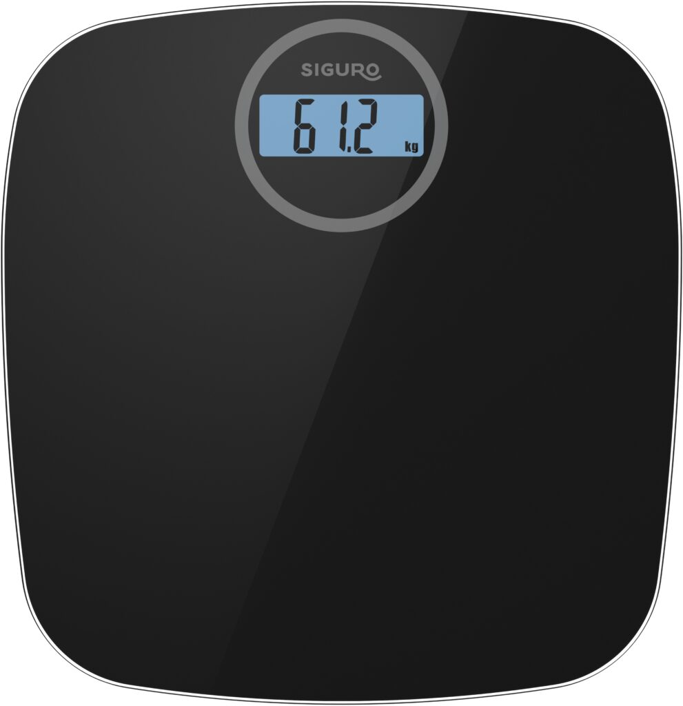 Navážená hmotnost se zobrazuje na velkém podsvíceném LCD displeji o rozměrech 74 × 28,5 mm. Světle modré podsvícení zaručuje bezproblémovou čitelnost i za snížené viditelnosti. Osobní váha Siguro SC210B Slick také umožňuje výběr jednotek měření (pomocí tlačítka na zadní straně). K dispozici jsou kilogramy, libry a stones.