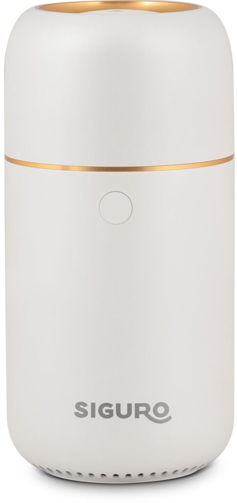 Používání akumulátorového aroma difuzéru Siguro Serenity Pearl White U700W je zcela bezdrátové a bez nutnosti neustálého připojení k elektrické síti. Disponuje totiž integrovanou baterií zajišťující až 3,5 hodiny nepřetržitého provozu, ať už budete kdekoliv – třeba i v autě. Dalším benefitem je, že tento přístroj určený pro místnosti do 20 m² můžete používat jak v kombinaci s vaším oblíbeným esenciálním olejem pro uklidňující a uvolňující účinky, tak i pouze s vodou jako zvlhčovač vzduchu. Dále oceníte tichý až neslyšitelný chod, 3barevné podsvícení, snadnou přenositelnost, jednoduché jednotlačítkové ovládání a vaše oči potěší prémiový vzhled s hliníkovými doplňky.