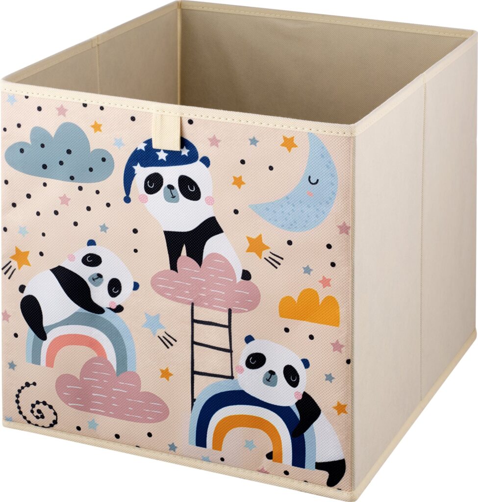 S praktickým detským úložným boxom Siguro s objemom 41,5 litra bude organizácia a skladovanie hračiek o niečo jednoduchšie. Tento box s veselým detským motívom – roztomilými pandami je vhodný do skriniek a políc s hĺbkou minimálne 33 cm, a okrem toho je kompatibilný s nábytkom Ikea Kallax. Nechýba ani praktická úchytka uľahčujúca zdvihnutie alebo vyťahovanie boxu z police alebo skrinky.