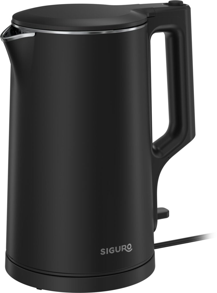 Táto moderná rýchlovarná kanvica s objemom 1,7 litra je vyrobená z kvalitnej nehrdzavejúcej ocele a disponuje dvojplášťovým vyhotovením (Cool Touch), vďaka ktorému zostáva povrch chladný na dotyk. Rýchlovarná kanvica Siguro Hamilton R470B je vybavená prémiovým Strix konektorom, skrytým vykurovacím telesom na jednoduchú údržbu a ukazovateľom hladiny vody vo vnútri nádoby. Samozrejmosťou je automatické vypnutie po dosiahnutí bodu varu, ochrana proti chodu naprázdno aj praktická 360° otočná základňa s úložným priestorom na kábel.