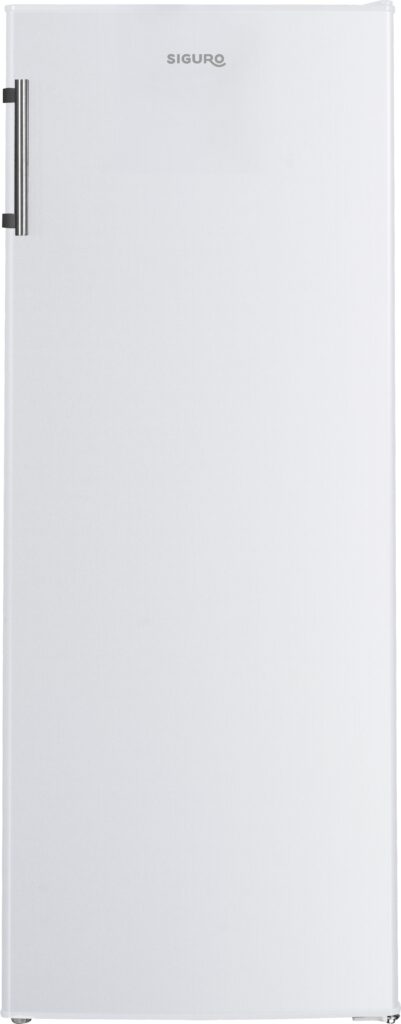 Monoklimatická chladnička Siguro MC-J140W ponúka celkový úžitkový objem 242 litrov rozdelený pomocou piatich políc z tvrdeného skla, ktoré sú nastaviteľné – v prípade potreby môžete jednoducho zmeniť dispozície úložného priestoru. Vo dverách nájdete taktiež polohovateľné priehradky vyhradené na uloženie veľkých fliaš, pohárov či drobných potravín. Nechýba ani výsuvný Crisper box na ovocie a zeleninu. Príjemným benefitom je, že dvere je možné otvoriť až do takého uhla, ktorý umožňuje plnohodnotné vysunutie zásuvky.
