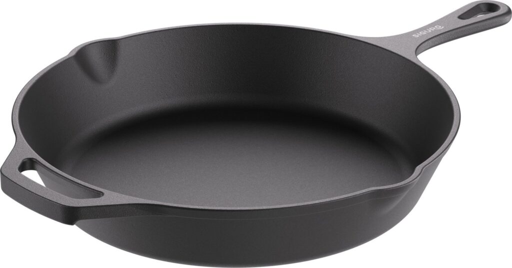Menšou nevýhodou, ale súčasne aj výhodou panvice je jej vyššia hmotnosť – liatina sa rovnomerne zahrieva a dlho udržuje teplo, vďaka čomu sa perfektne hodí na prípravu zeleniny, rýb a predovšetkým steakov. Mäso sa rýchlo zatiahne a následne rovnomerne prepečie. Pokrmy pripravované na liatinovej panvici Siguro Ready2Cook budú mať vždy chrumkavú kôrku, a navyše získajú charakteristickú chuť.